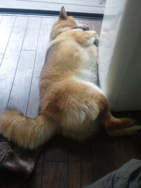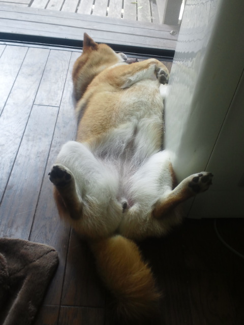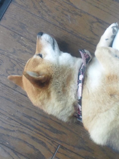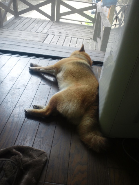 暑くなってきましたから、床で伸びていることが多くなりました。
