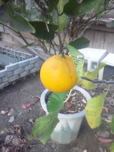 今年は、みんな落果してしまい、唯一残ったミカン。