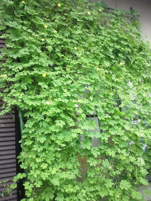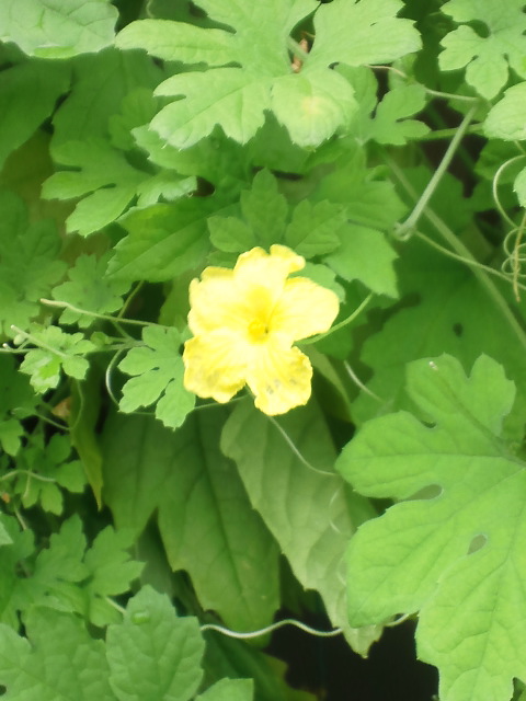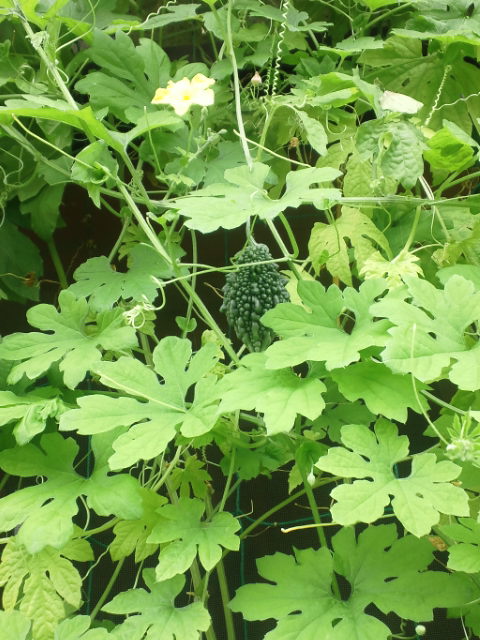 緑もまだ綺麗だし、花もまだまだ沢山咲いてるゴーヤ。