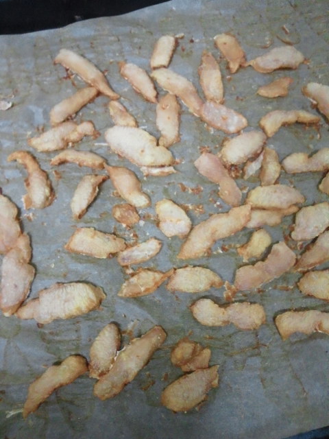 後の作り方は、他のジャーキーと同じくオーブンで加熱乾燥。