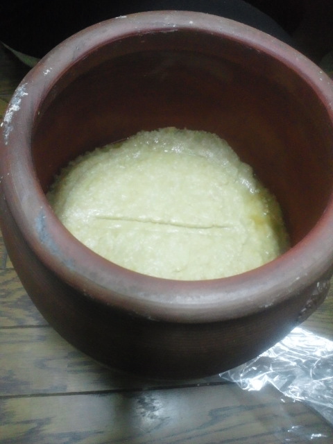 先月仕込んだ「手造り味噌」の天地返しをしました。