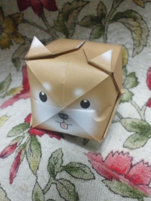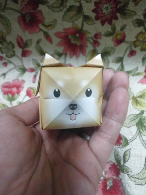 柴犬さくらに見せてた娘は、危うく折り紙柴ちゃんを取られるところでした。