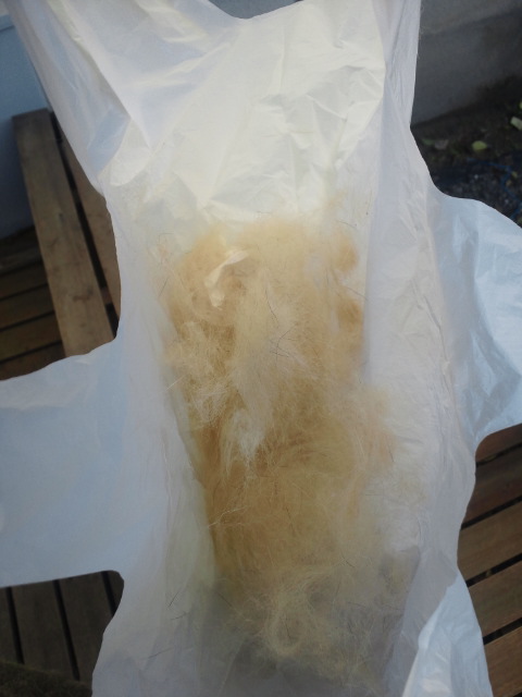 10分ほどで、スーパー袋いっぱいの抜け毛…
