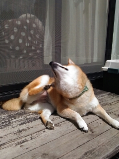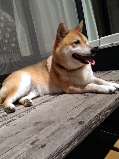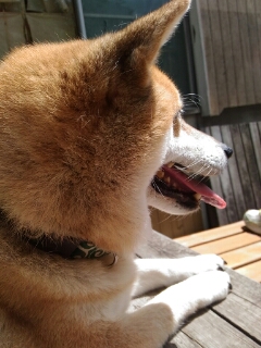 何故か柴犬さくら、ウッドデッキで日向ぼっこ。