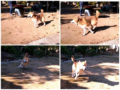 あっちへ、こっちへ逃げ回る柴犬さん。