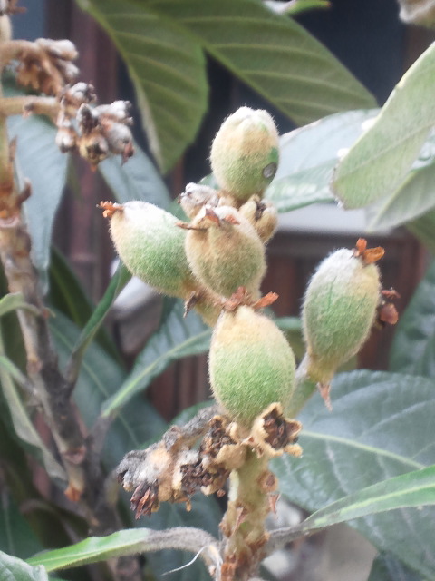 冬に花を咲かせていた枇杷も膨らみ始めてます。