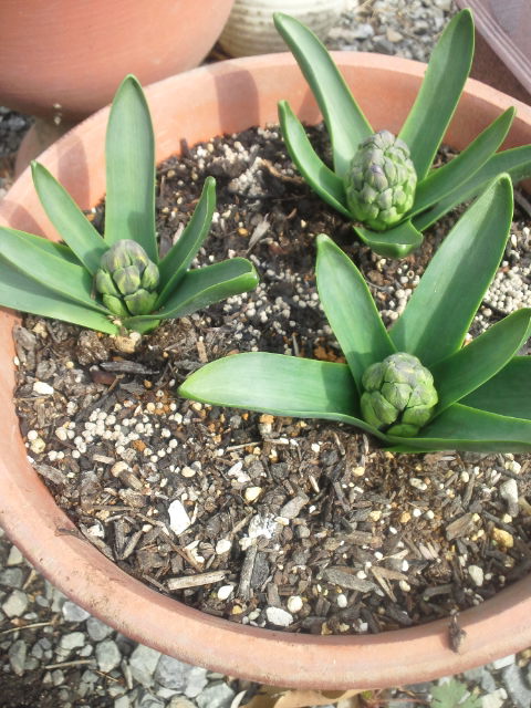 ヒヤシンスが、何やら別の生き物のように成長しています。