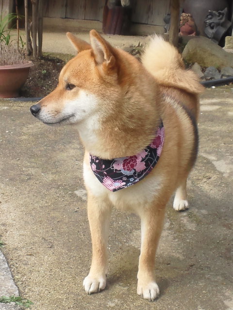 そんな春の景色の中にたたずんでる柴犬さくら。