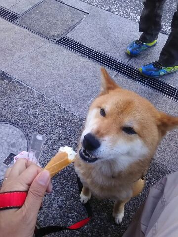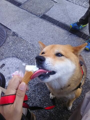 肉串は無くても、アイスが有れば満足な柴犬さん。