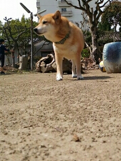 畑を散策したら叱られる柴犬さん、