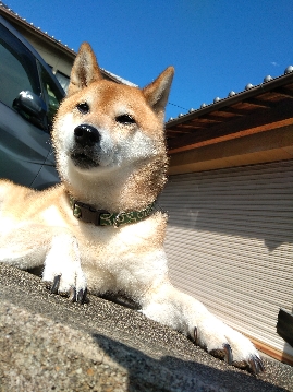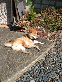 外の仕事をしていると、定位置でまったりな柴犬さくら。