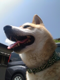 ワンコにマスクは不要なんだワンの柴犬さくらに、