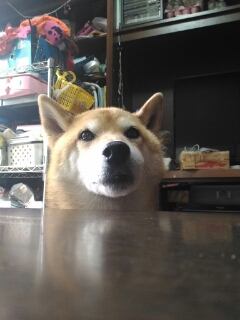 美味しいものが出てくるのでは?を期待して見つめる柴犬さん。