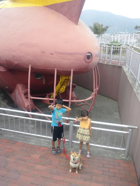 先ずは、深海調査船の「しんかい」の前で、記念撮影