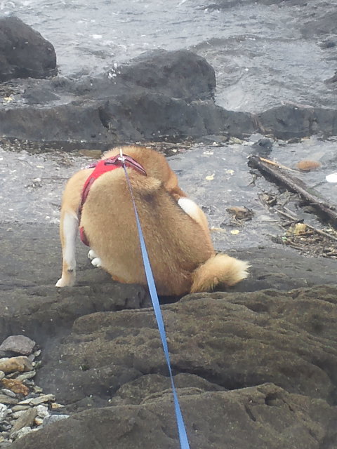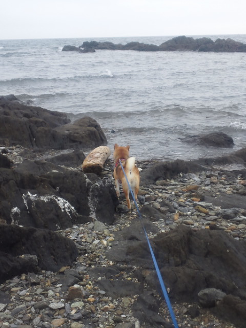 柴犬さくらも、海に名残惜しそうに見つめてました。