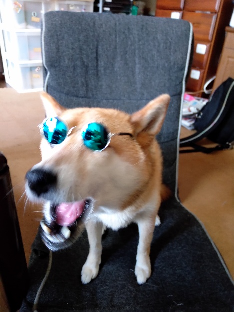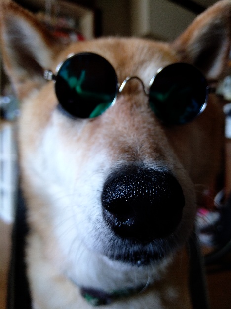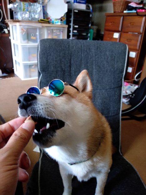 オヤツがチラつけば、サングラスくらい平気なようです。