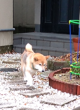 さくらちゃんは、広いお庭のどこかで自主的に用足しをして