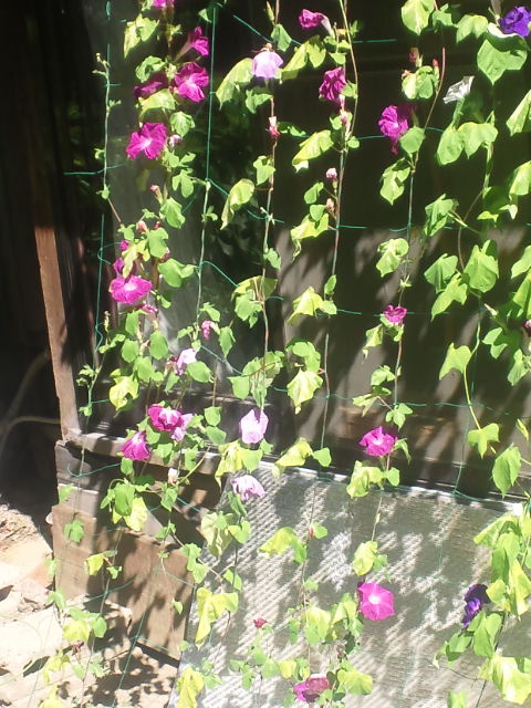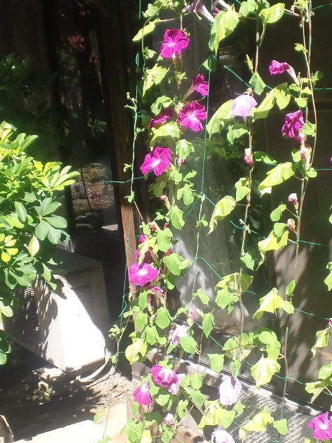 最近、それなりに夕立とかで雨が降るのと、夏花壇が朝顔だけになったおかげか、今になって朝顔が勢いづいてます( ̄∀ ̄)