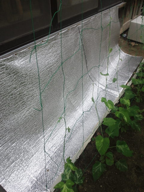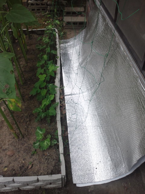 冬にカーペットの下へ敷いていた銀色の保温シートが破れてたので、それを転用する事にしました。