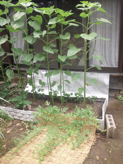 テーマ夏花壇のヒマワリが思いのほか成長が早いですf^_^;