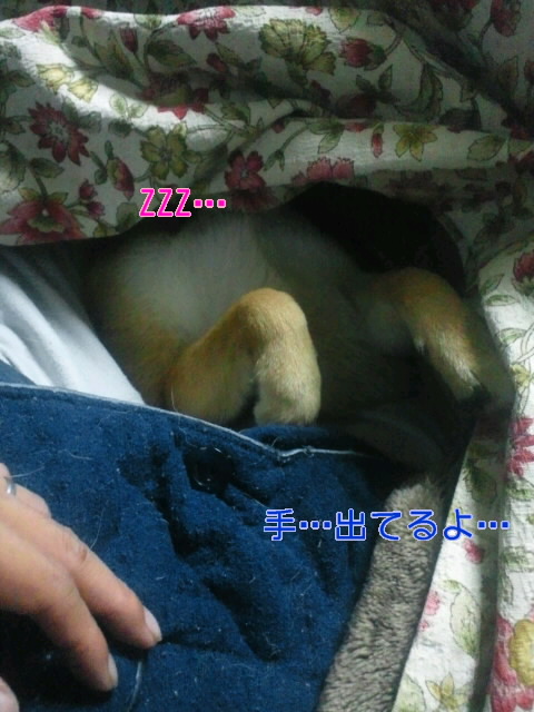 うるさいなぁ~って、目を開けてコタツの中へ…