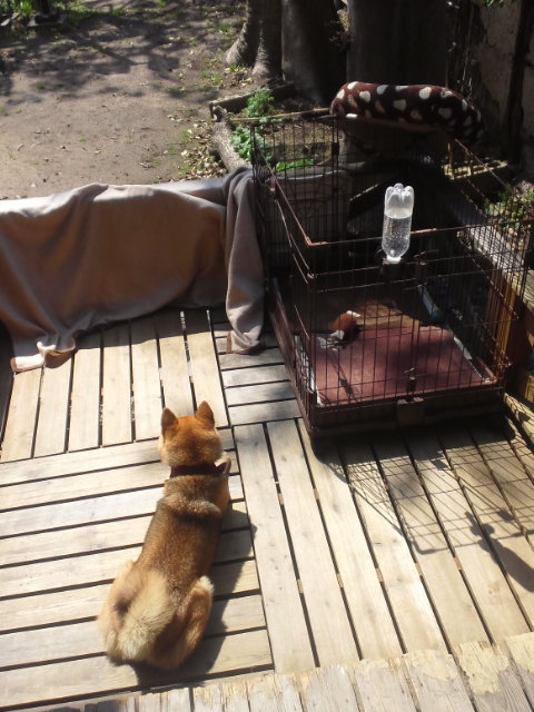柴犬さくらのケージ丸ごと天日干し。