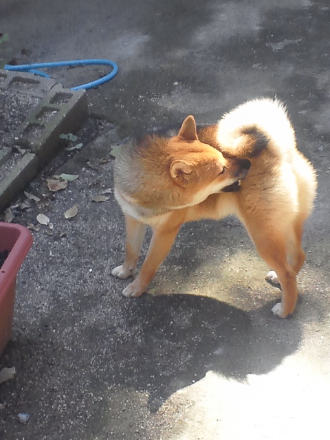 涼しくなったため、あまりバテなくなった柴犬さくら。