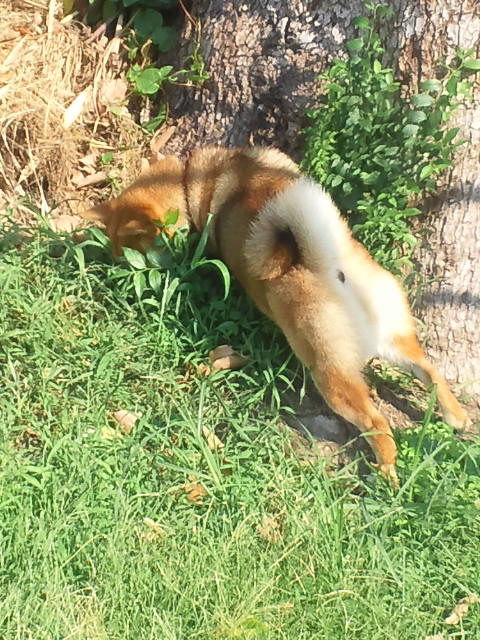 呼んでも、近づいても集中していた柴犬さくらf^_^;