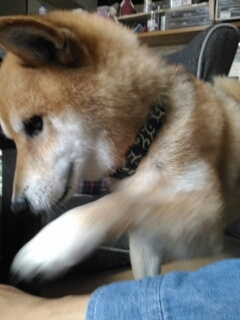 さくらちゃんは手で、もう一度って催促するのね。うちのはるは鼻で私の手を上へと持ち上げて催促します。犬によって催促の仕方が違うのね。