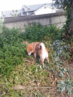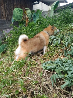 そして、捨てた枝豆に、興味津々の柴犬さん。