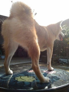 眩しい秋空に、くるくる尻尾が輝いてました。