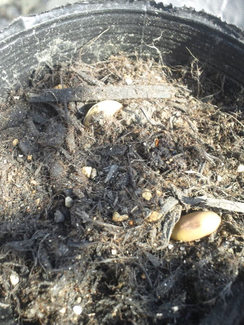 とりあえず、黒い線を下にして、少し土から出るくらいに蒔きました。