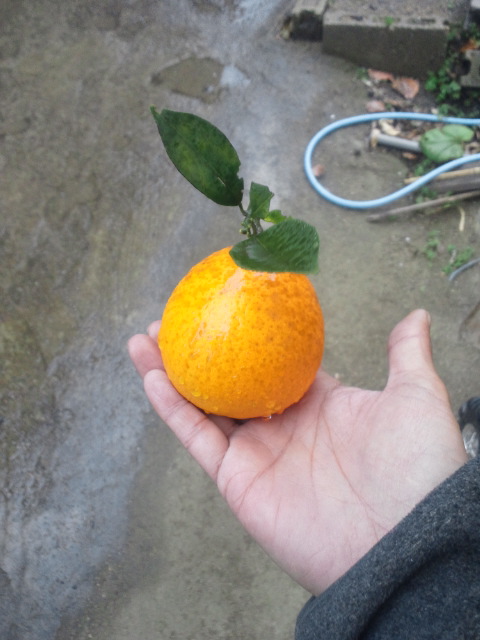 大きな葉付きみかんですが、上手く乗るかちょっと心配f^_^;