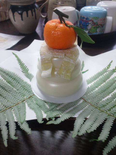 こちらは、みかんセットが無かったので、ほんとの小さな葉着きみかんを買ってきてのせています。