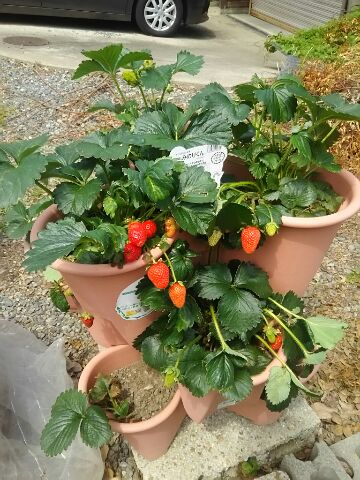 やっと、苺が赤くなってきました。