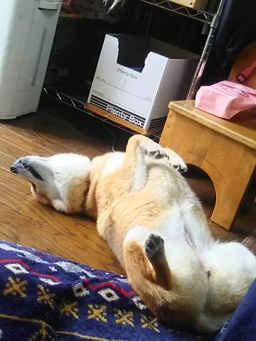 へそ天で究極の癒しなんだワンの柴犬さくらに、