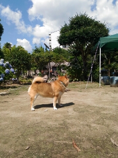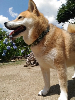 暑さに、まだまだ慣れないんだワンの柴犬さくらに、