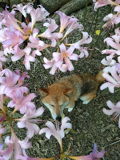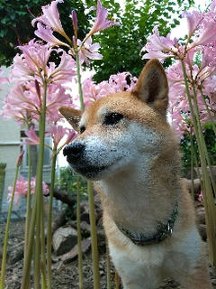 ユリも咲いてるのですね!さくらちゃんいいモデルしてますよ。暑いのに頑張ったね!(^.^)