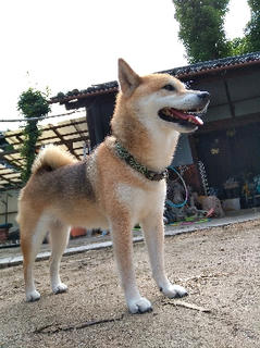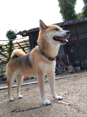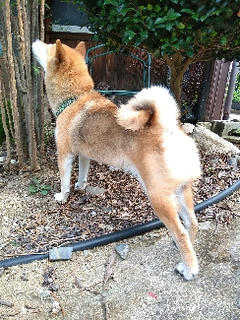 この後、何故か南天をチェックしていた柴犬さん。