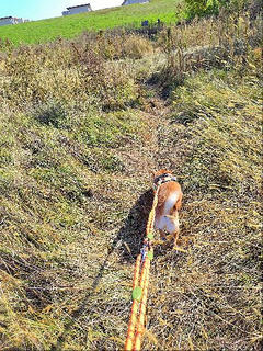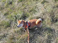 ご機嫌散歩の柴犬さん、グイグイ草むらに入って行きます。