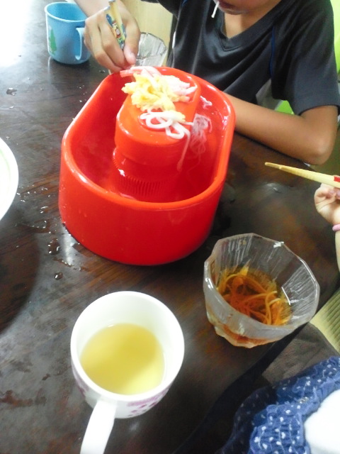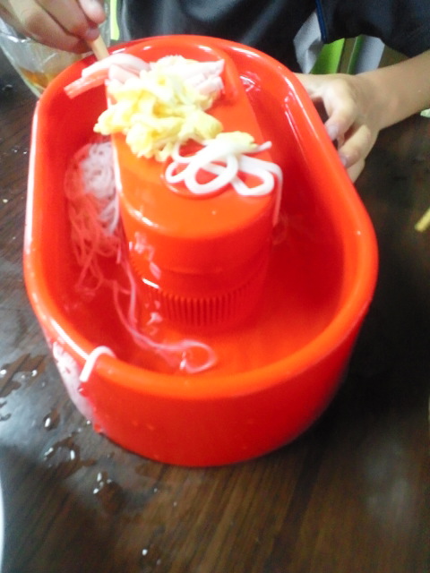 また、小さい流しそうめんマシーンの為、一度に沢山入れると詰まってしまいます。