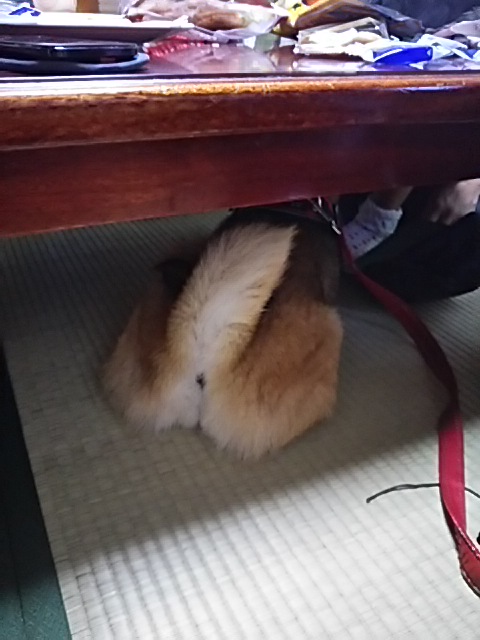 机の下に潜り込んでました。