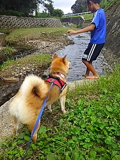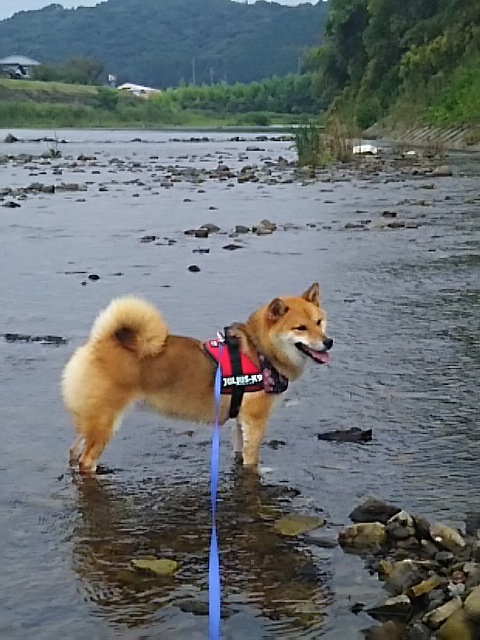 川に浸かってさくらちゃんは暑いのをクールダウンできてよかったですね。