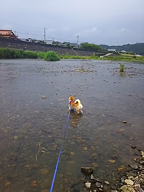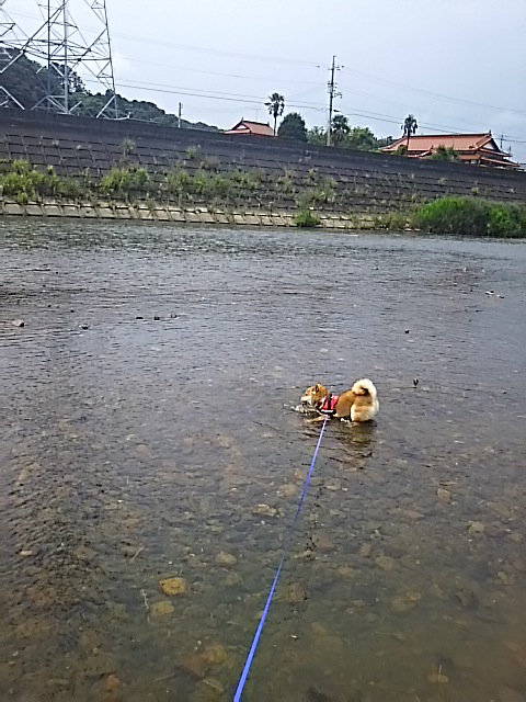 かなり暑かったので、柴犬さくらも、あっさり入水(笑)