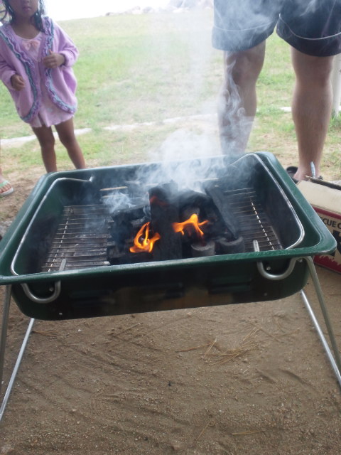 この日は、ハトコの子達と一緒に、海岸でバーベキュー。