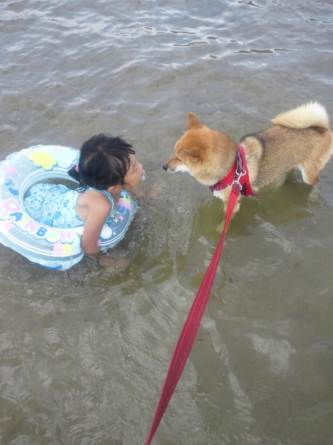 お姉ちゃんの浮き輪になんか言いたげ(笑