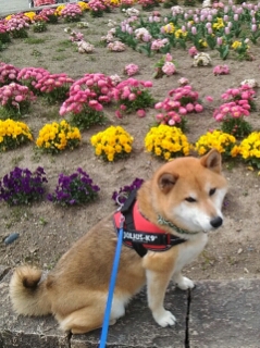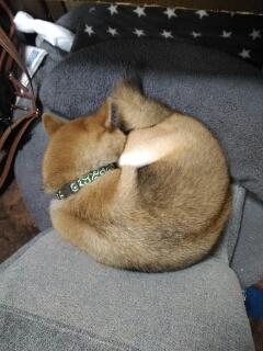 柴犬さくらも、疲れたのか、にへら顔(笑)