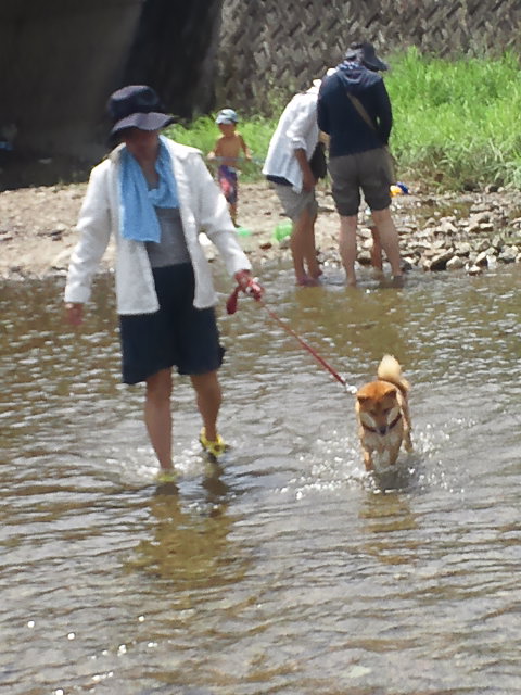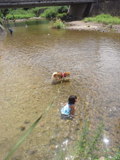 さくらちゃん、進んで川に入っていくなんて、もう水嫌い克服ですね。