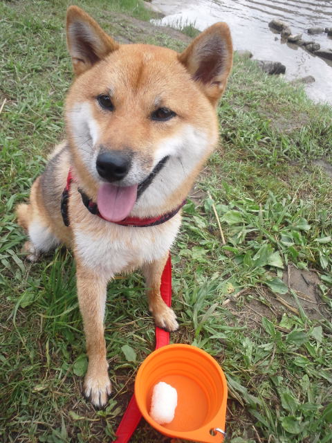 柴犬さくらは、さっさと食べてクレクレ光線出してましたf^_^;