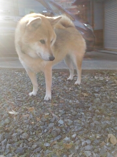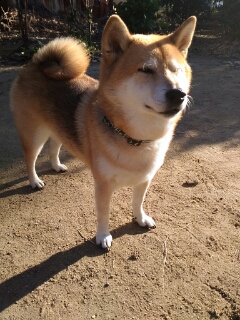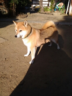 暑すぎないので、引き締まった顔の柴犬さん。